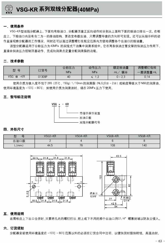 VSG-KR 系列双线分配器(40MPa)
