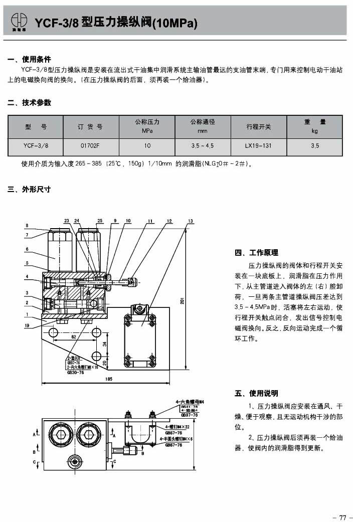 YCF-3/8 型压力操纵阀(10MPa)