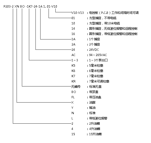 电动润滑泵P203:P203泵是性能优良的中央自动集中润滑泵,多可支持3个泵元件。适用于递进式系统,常用于工程机械、风力发电、客车底盘等中小型机械上。通用性强,小巧紧凑,性价比高。选型表: