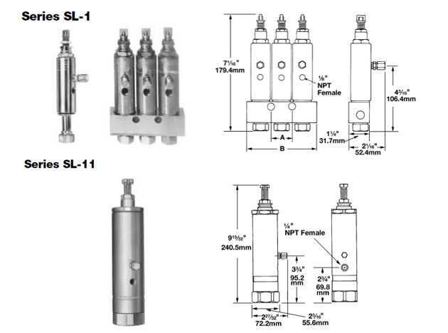 | SL-1 | 0.131 cm3 | 1.31 cm3 | 127bar | 241bar | 3/8” NPTF | 1/8” NPTF | 1~6 | |