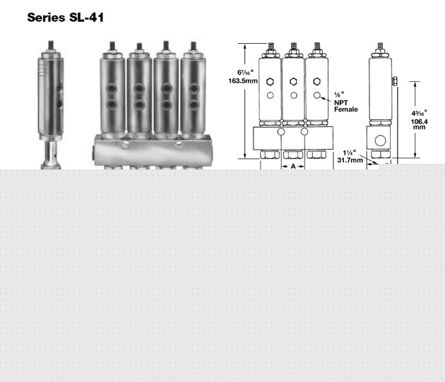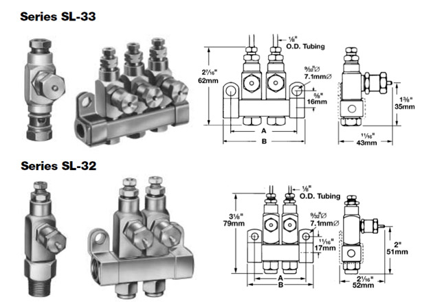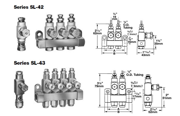 | 稀油 | SL-42 | 0.016 cm3 | 0.049 cm3 | 52bar | 69bar | 1/8” NPTF | 1/8” O.D | 1~6 10 15 |