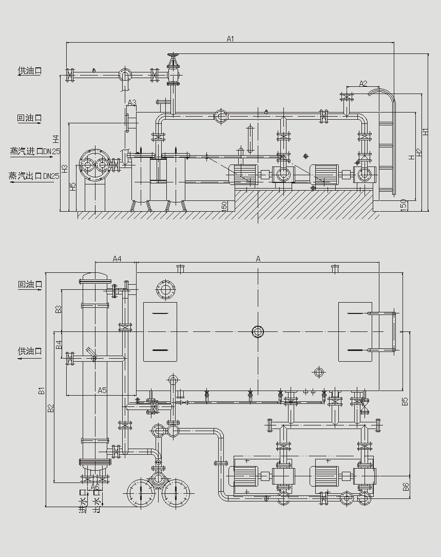 ≥250L/min稀油站原采用蒸汽加热,用户欲改用电加热时,订货时请说明;其主要部件均装于基础上,为分体式结构。