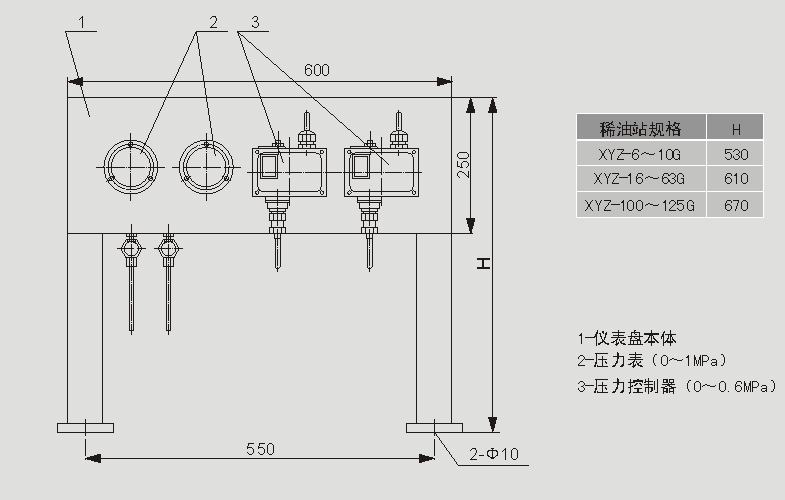 XYZ-250G~1000G型稀油站外形及安装尺寸