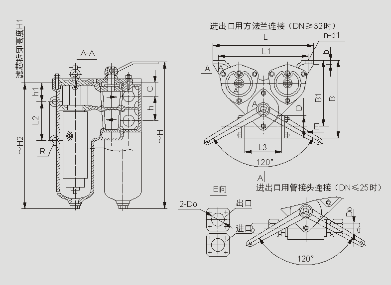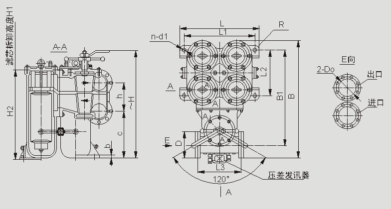 法兰标准GB573-65:DN150-3组滤芯组件、DN200-4组滤芯组件:压差发讯器为选配件。