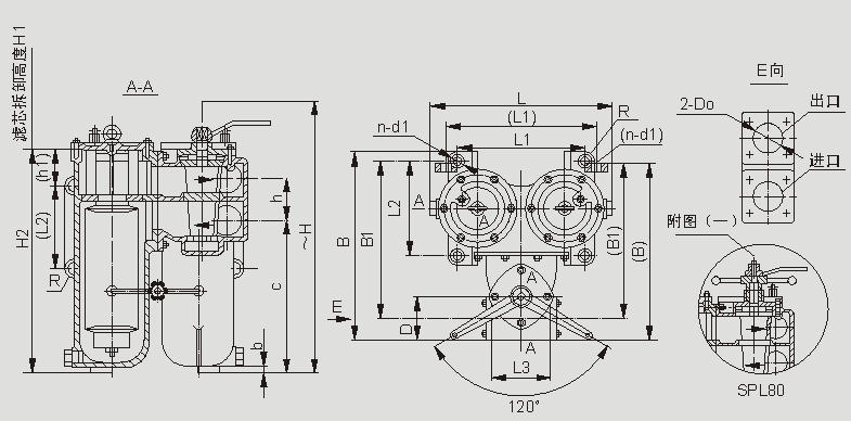 ()内尺寸为侧置式,压差发讯器为选配件,SPL80提升机构见附图(一)