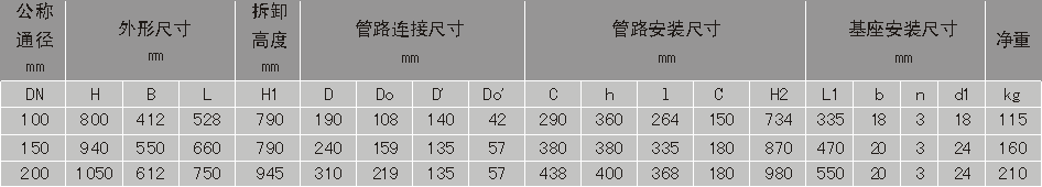 法兰标准:GB573-65(可根据需要确定):DN100、150-3组滤芯组件;DN200-4组滤芯组件;压差发讯器为选配件。