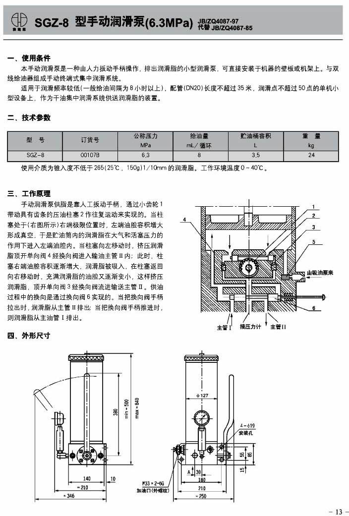 SGZ-8型手动润滑泵(6.3MPa)