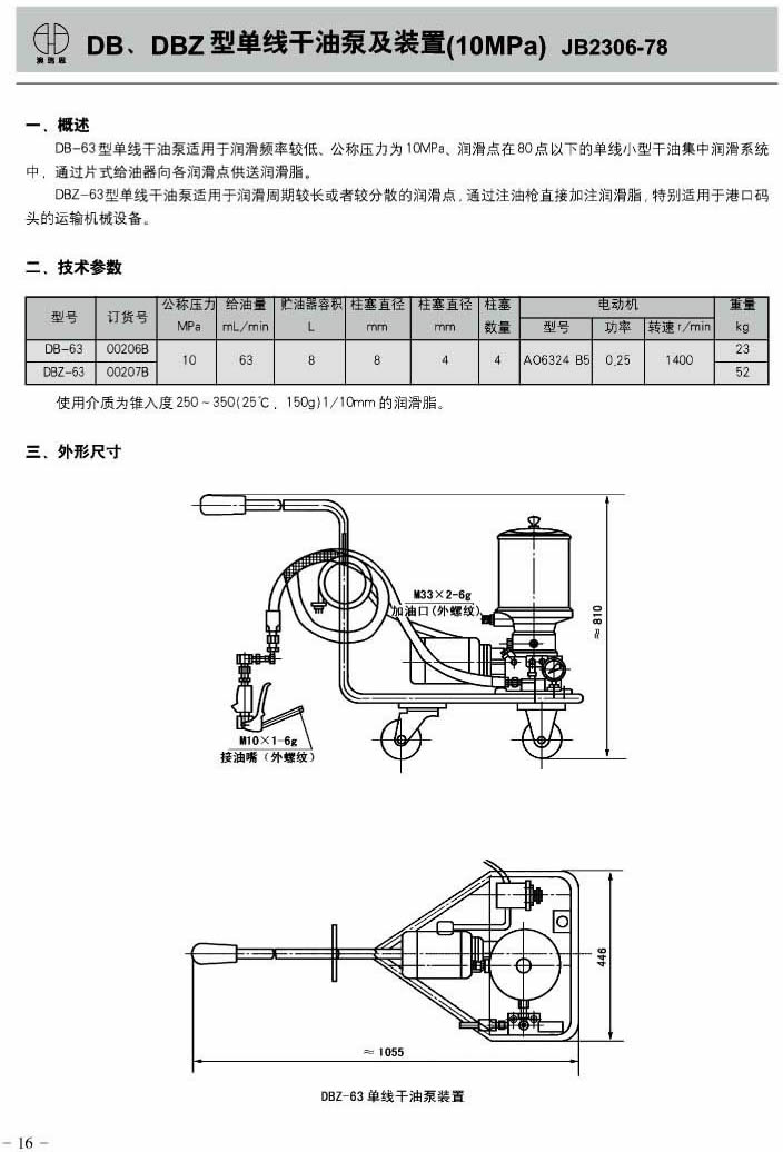 DB,DBZ型单线干油泵及装置(10MPa)