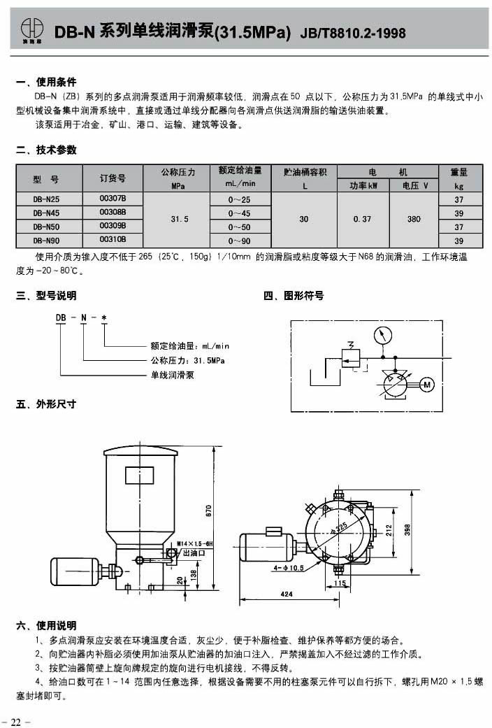 电动润滑泵及装置(DRB-P,40MPa,JB/T8810-1998)