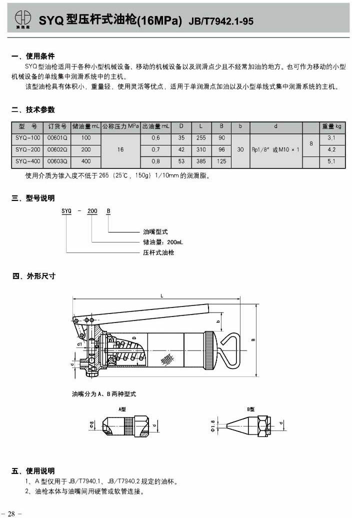 SYQ型压杆式油枪(16MPa)