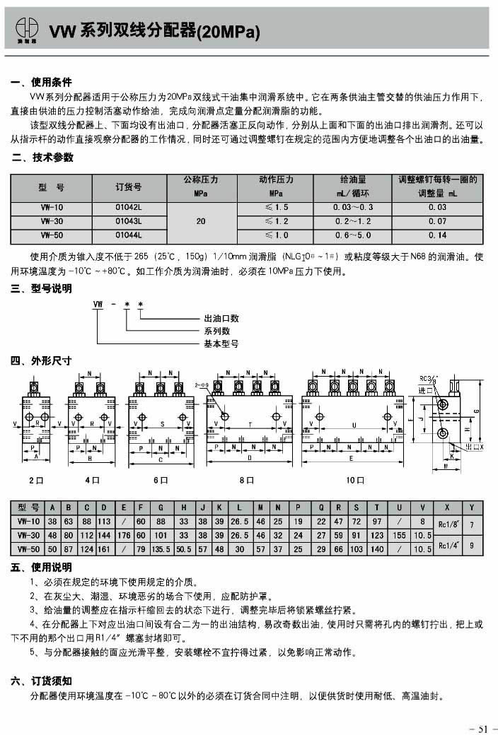 VW 系列双线分配器(20MPa)