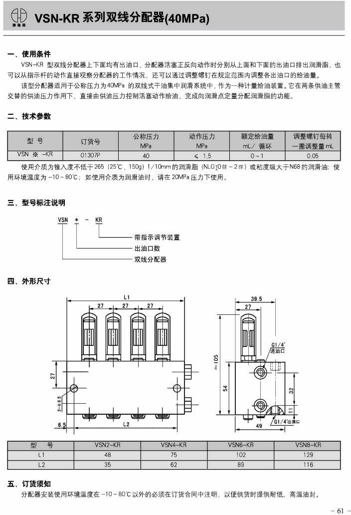 VSL-KR 系列双线分配器(40MPa)