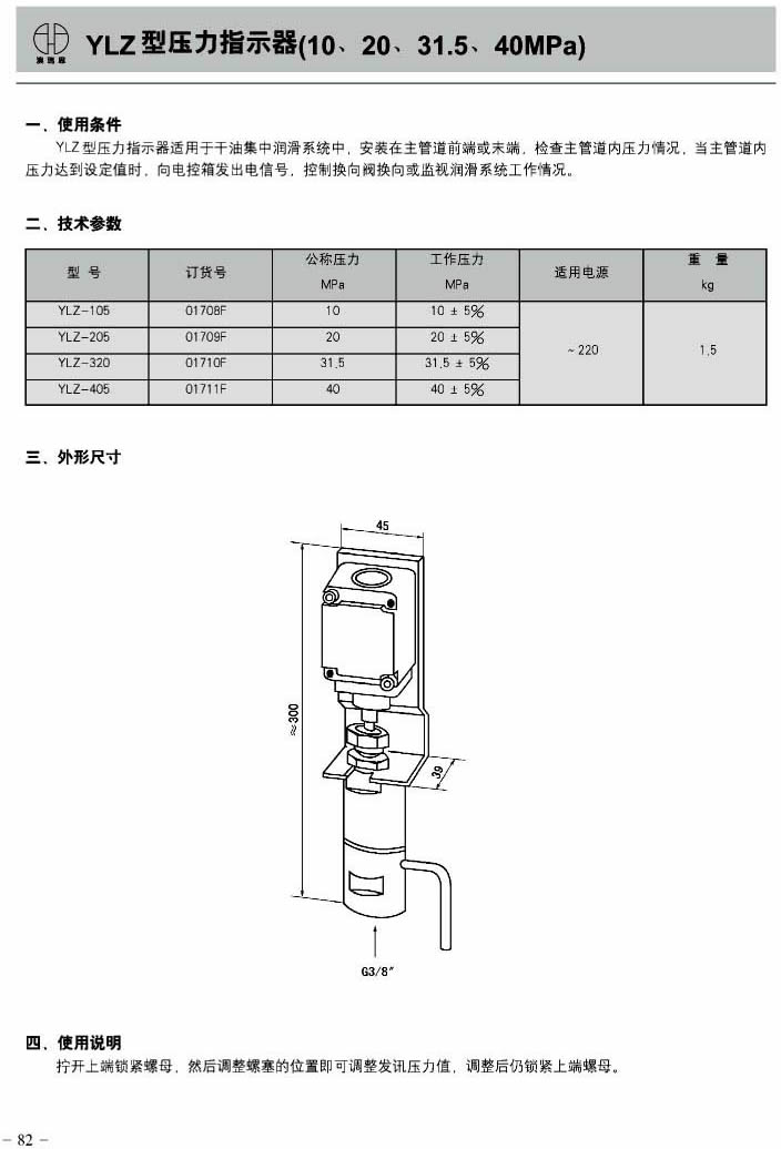 YLZ型压力指示器(10、20、31.5、40MPa)