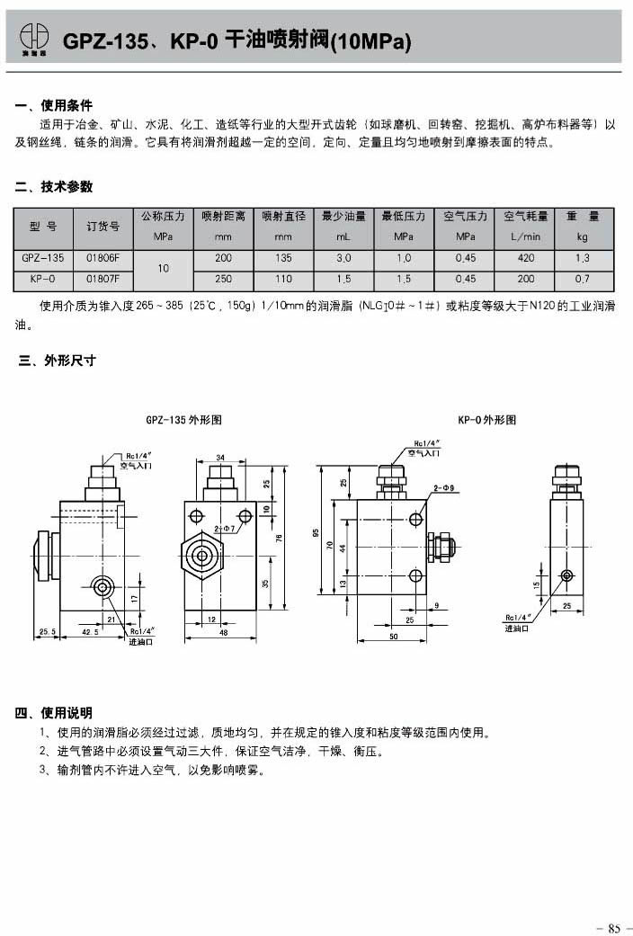 GPZ-135、KP-0干油喷射阀(10MPa)