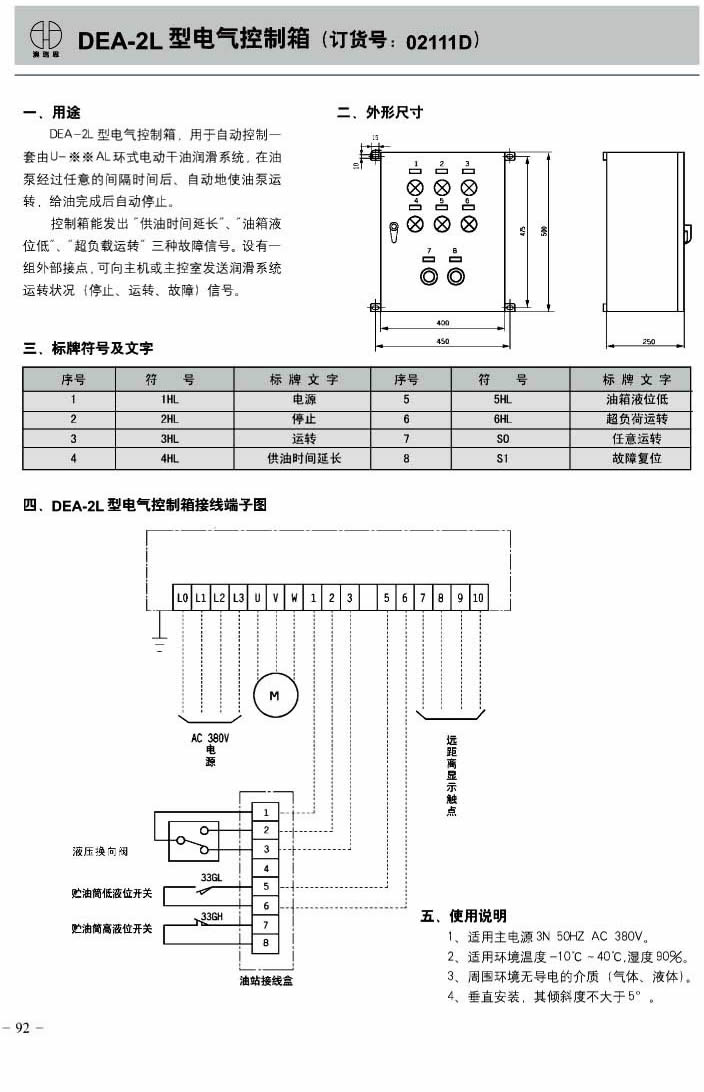 DEA-2L型电气控制箱